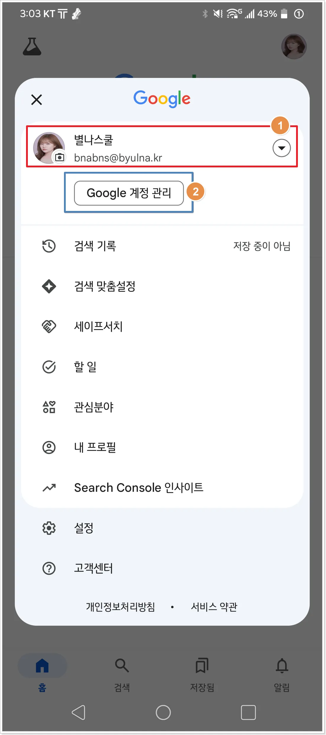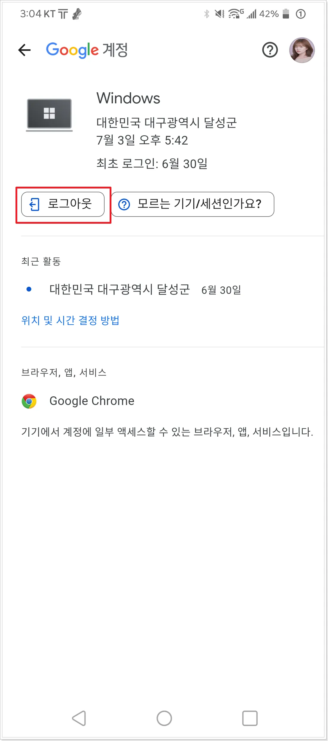 로그아웃을 진행해야하는데 PC 작업이 힘든 경우 모바일 구글 앱을 활용해서 쉽게 진행할 수 있습니다.
