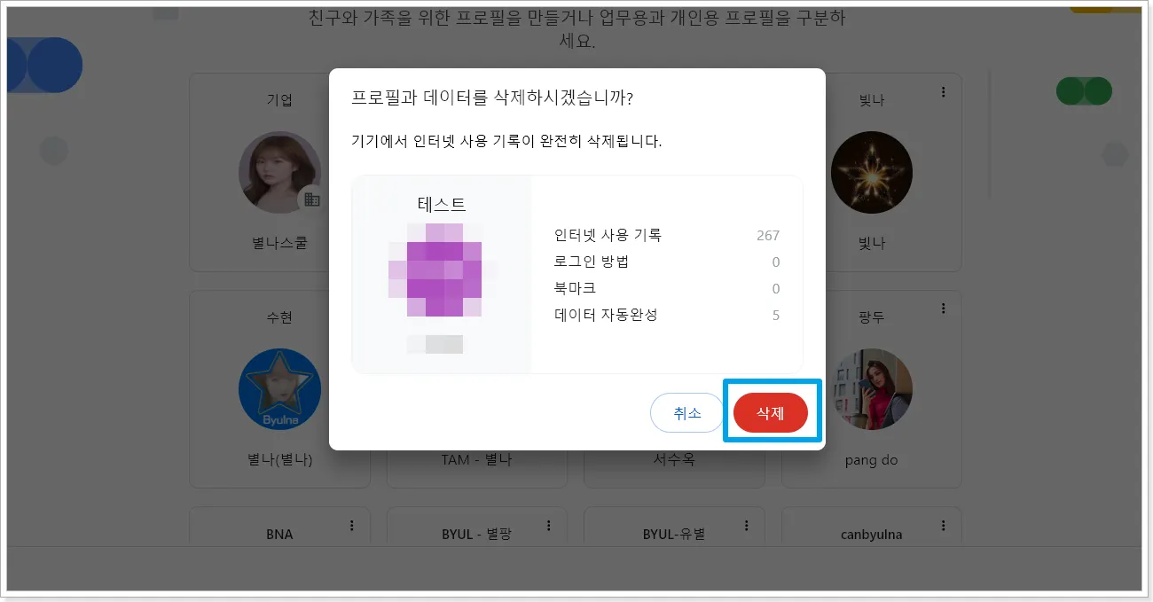 ↓ 사용기록 및 데이터 자동완성부분까지 모두 삭제를 합니다. ↓