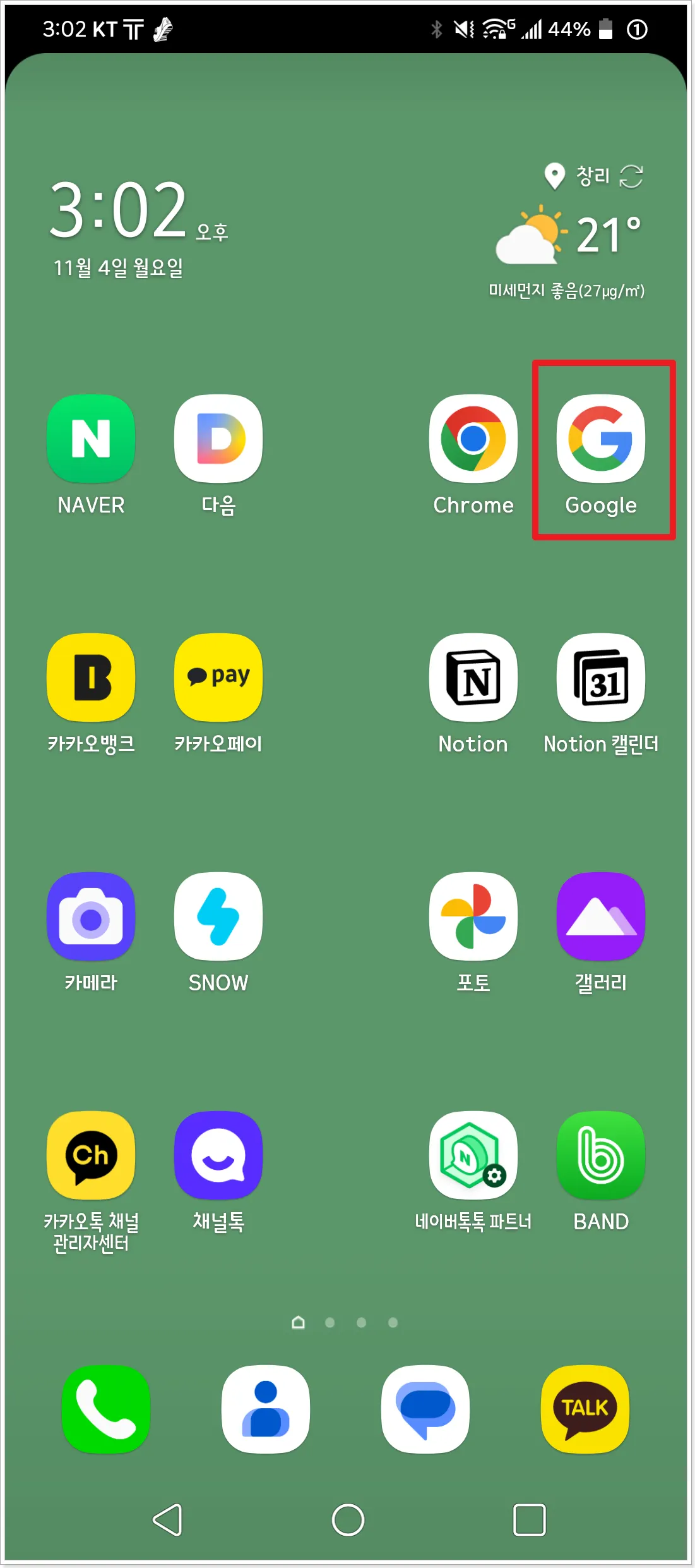 ↓ 스마트폰에서 구글 앱을 선택합니다. ↓