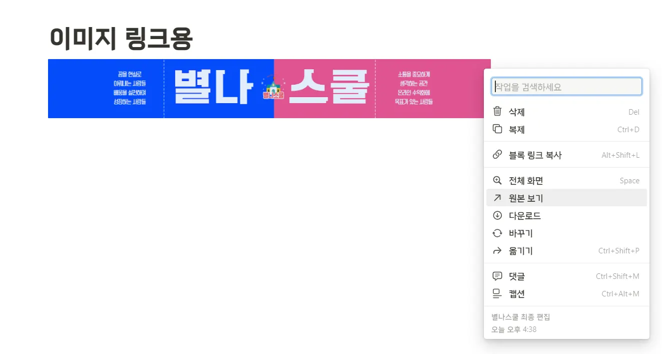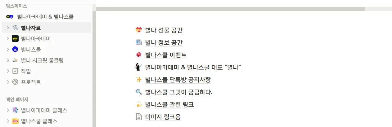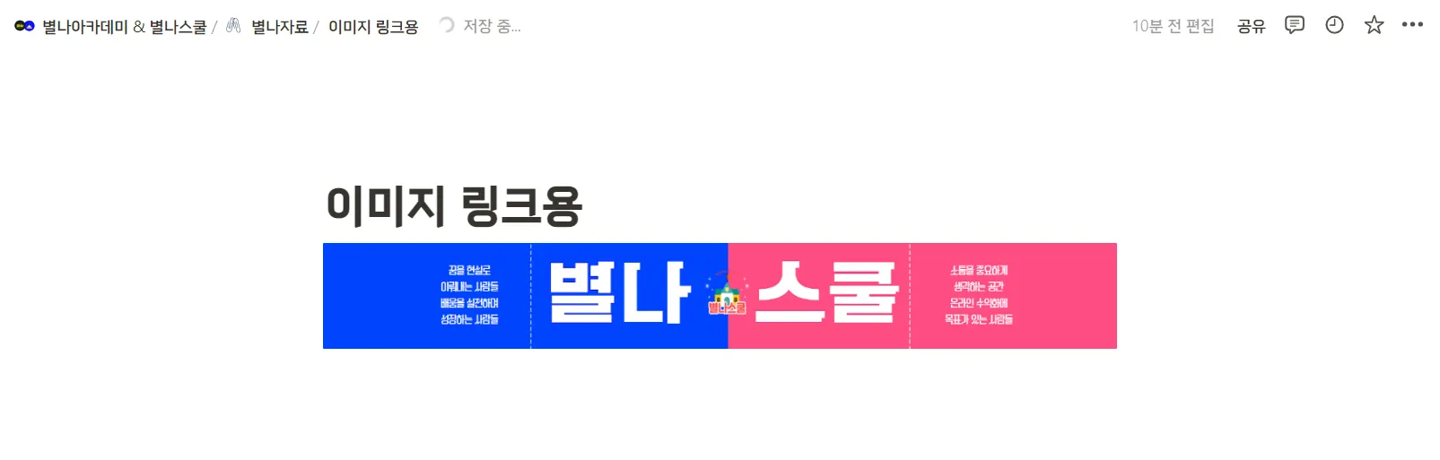 저는 별나 자료라는 페이지에 “이미지 링크용” 이라고 하위 페이지를 만들었습니다.