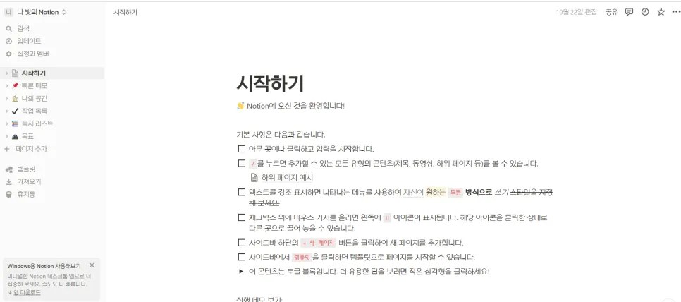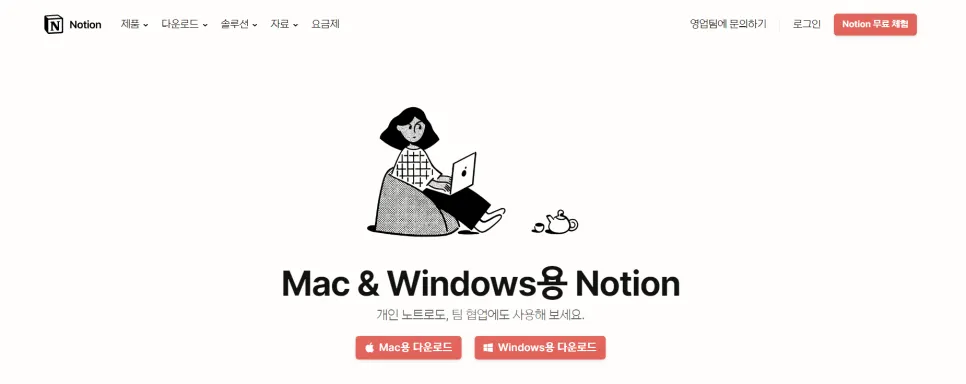 노션(notion)은 업무와 일상을 정리하고 흩어져 있는 자료를 한곳에 모을 수 있는 올인원 워크스페이스 입니다.