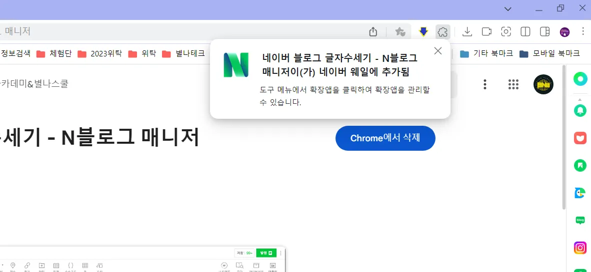 네이버 웨일에 확장프로그램이 설치되었음을 알 수 있습니다.