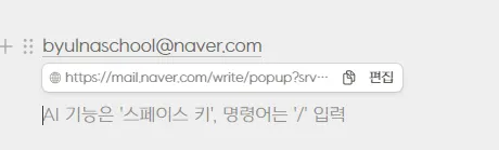 이메일 기재 시 메일쓰기로 바로 연결 어렵지 않죠? 노션이 아닌 다른 웹사이트에서도 활용할 수 있으니 참고해주세요.\