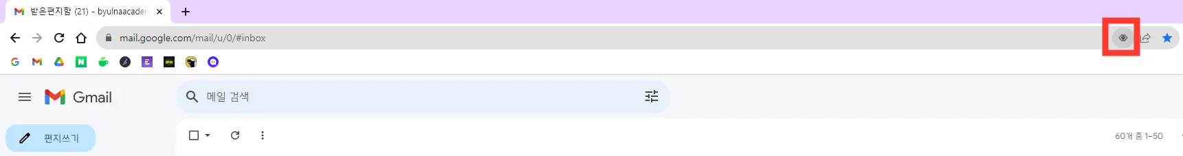 사용하는 클롬에서 지메일을 클릭해주세요. url 상단을 확인하면 아래 이미지에서 보이는 아이콘을 발견할 수 있습니다.