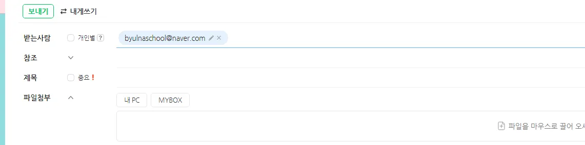 아래 이미지 처럼 이메일 주소를 넣었지만 텍스트 형태로 클릭을 할 수 없고 이메일을 보내기 위해서는 복사해서 붙여넣기 작업을 하거나 직접 이메일로 가서 받은 사람 주소를 입력해야 합니다.